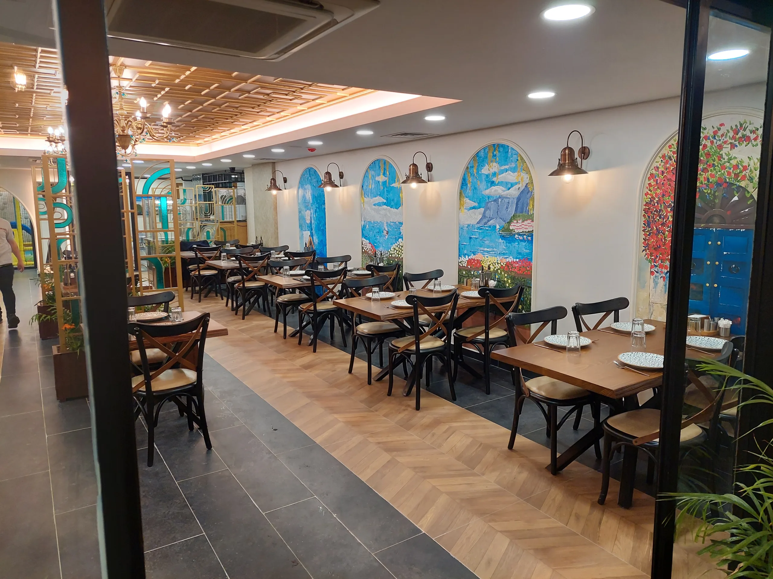 This project features the interior design for a Turkish kebap restaurant that is part of a growing franchise. The concept celebrates authentic Turkish culinary traditions while maintaining a cohesive, recognizable brand identity across multiple locations. Warm, natural materials such as stone, wood, and textured tiles create an inviting, culturally rich ambiance, complemented by subtle contemporary elements to appeal to a broad audience. Carefully considered spatial planning ensures efficient service flow and maximizes seating capacity without compromising comfort. Traditional motifs and handcrafted details were thoughtfully integrated to enhance the cultural narrative, providing guests with an immersive and memorable dining experience.